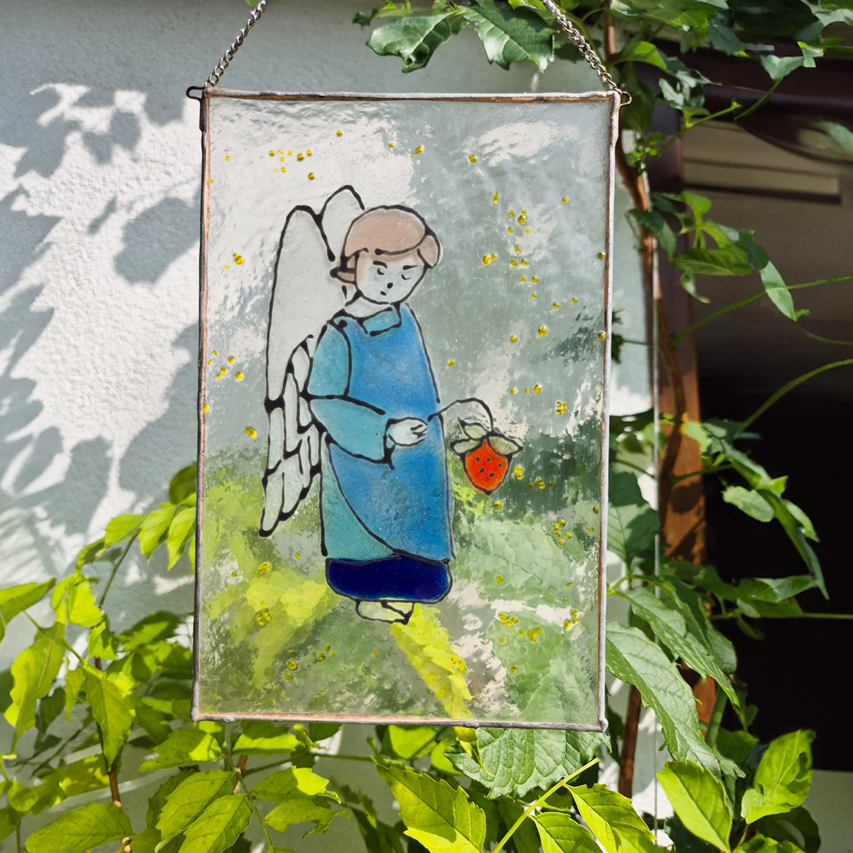 Kontury, kolory, dekoracyjne fryty nakładamy z każdej strony szkła co pozwala uzyskać głębie wykonanej pracy. Malunek utrwalany w procesie wypalania w piecu i jednocześnie dzięki procesowi zgrzewania i krystalizacji szkła wydobywamy piękno kolorów barw.