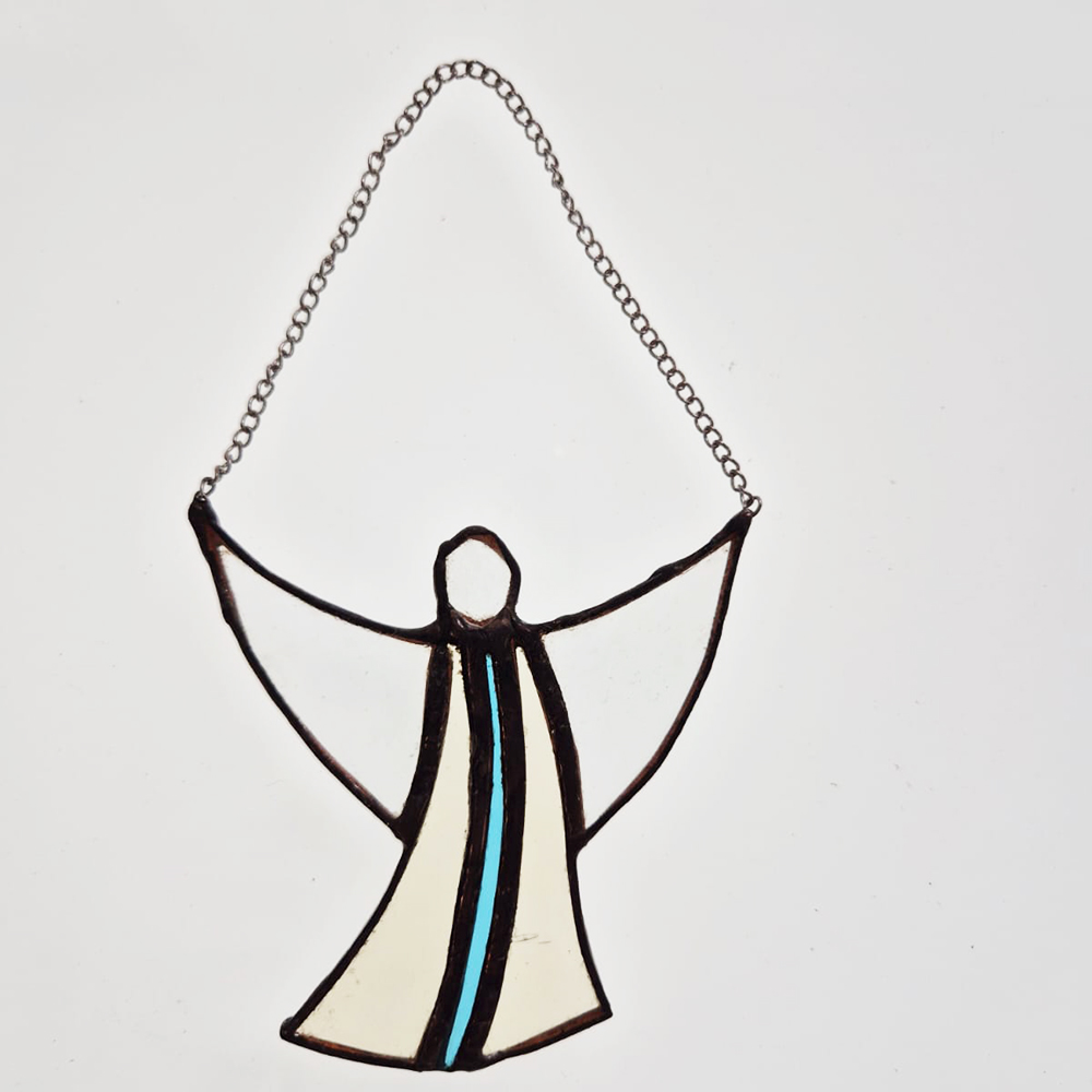 Aniołek wykonany metodą Tiffaniego to subtelna i pełna uroku dekoracja ze szkła, łącząca tradycyjne rzemiosło z wyjątkową symboliką. Każdy element aniołka został ręcznie wycięty ze szkła, starannie oszlifowany i oprawiony w miedzianą taśmę, a następnie połączony lutem, co gwarantuje trwałość i elegancki wygląd.