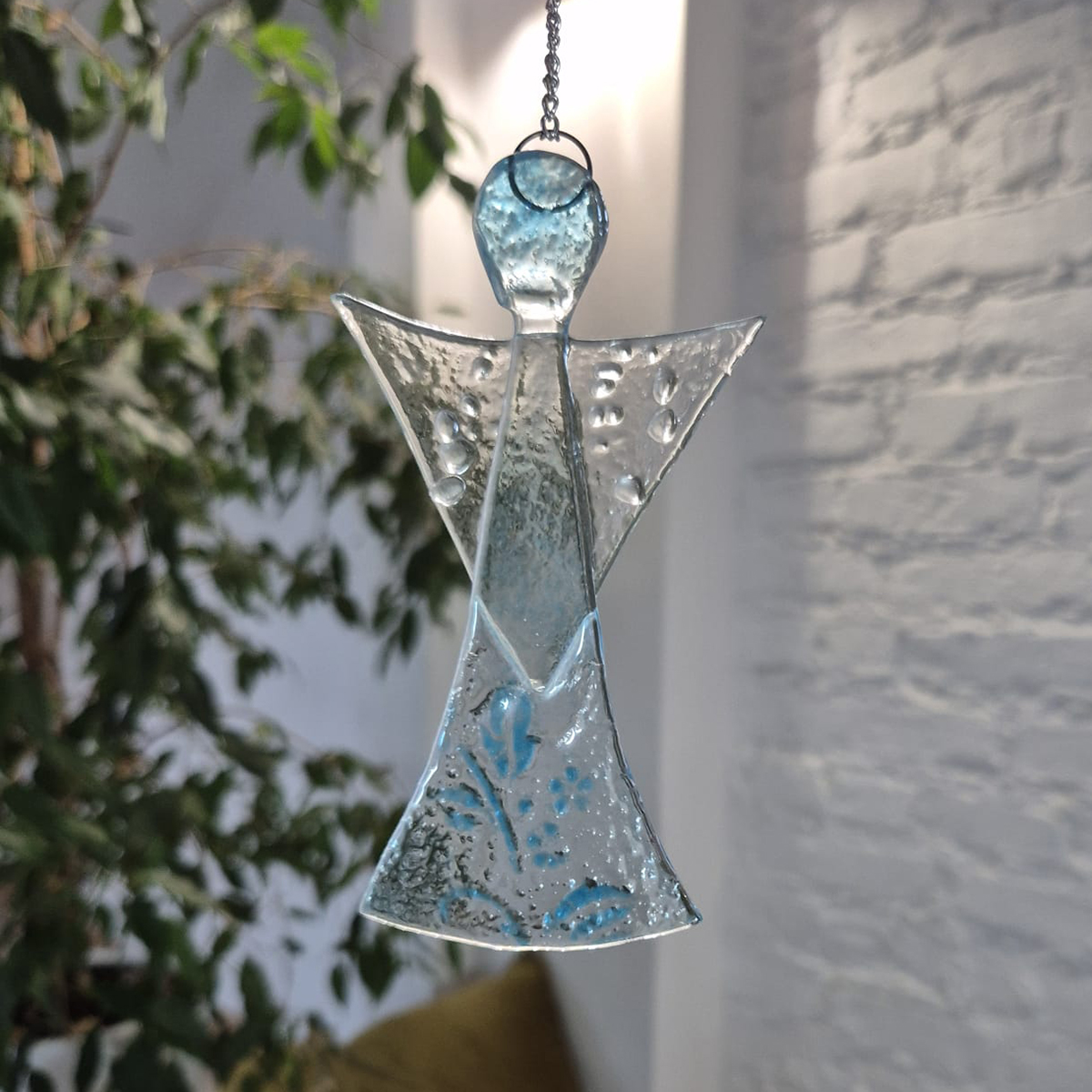 Ten wyjątkowy aniołek to ręcznie wykonana ozdoba, która wniesie do Twojego domu odrobinę świątecznej magii. Stworzony metodą fusingu – stapiania szkła w wysokiej temperaturze – zachwyca delikatnymi detalami i subtelnym blaskiem. Idealny do zawieszenia na choince lub jako prezent, który wyrazi ciepłe uczucia.