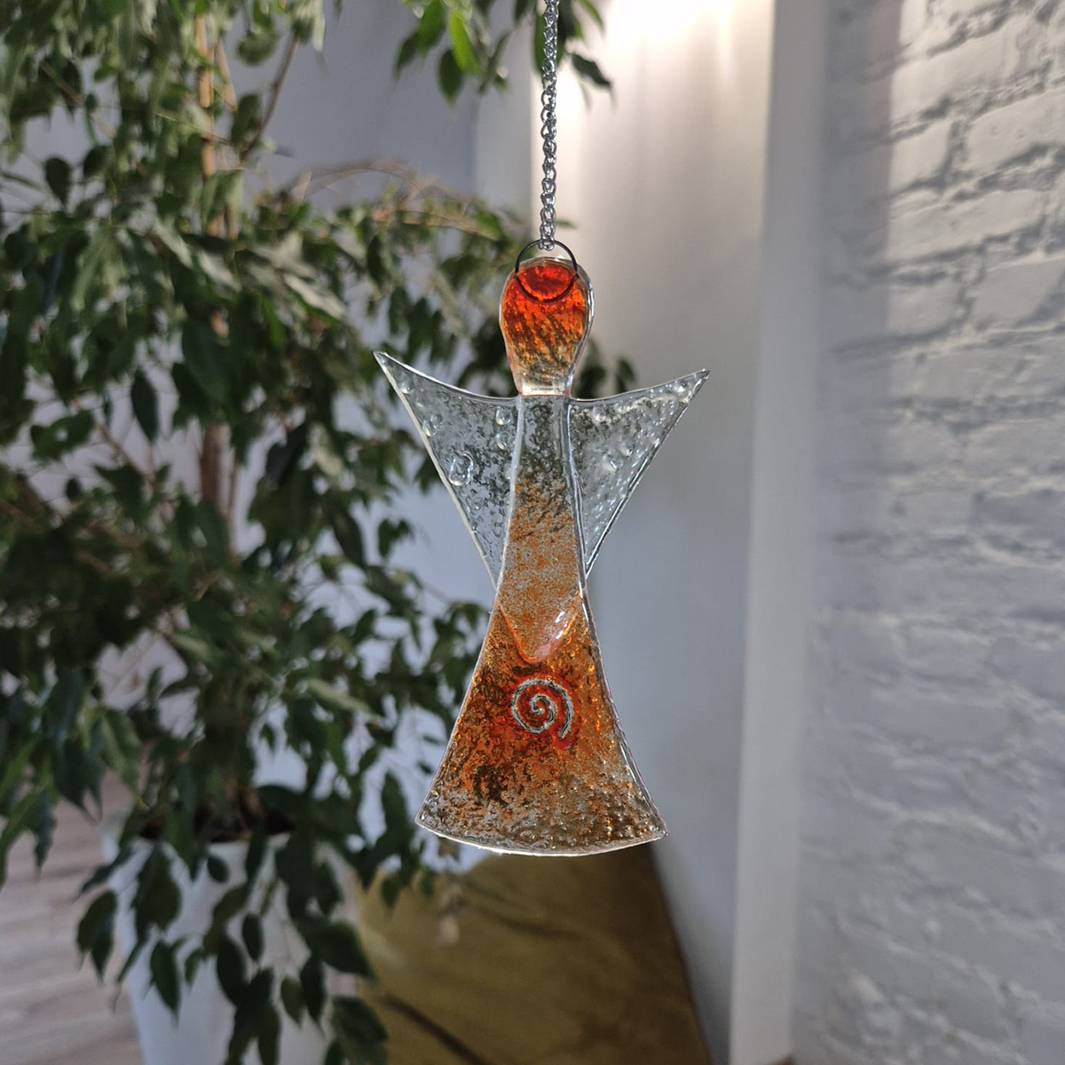 Ten wyjątkowy aniołek to ręcznie wykonana ozdoba, która wniesie do Twojego domu odrobinę świątecznej magii. Stworzony metodą fusingu – stapiania szkła w wysokiej temperaturze – zachwyca delikatnymi detalami i subtelnym blaskiem. Idealny do zawieszenia na choince lub jako prezent, który wyrazi ciepłe uczucia.