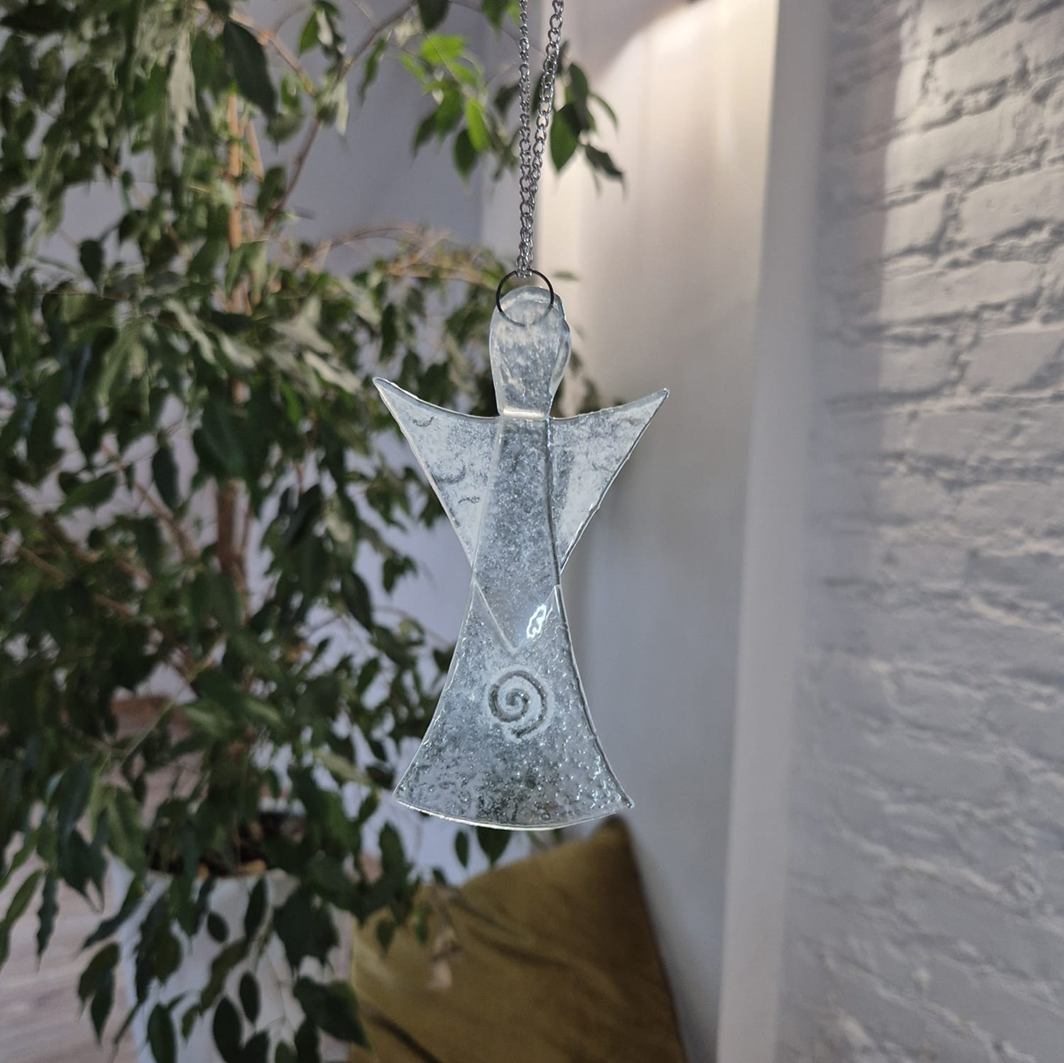 Ten wyjątkowy aniołek to ręcznie wykonana ozdoba, która wniesie do Twojego domu odrobinę świątecznej magii. Stworzony metodą fusingu – stapiania szkła w wysokiej temperaturze – zachwyca delikatnymi detalami i subtelnym blaskiem. Idealny do zawieszenia na choince lub jako prezent, który wyrazi ciepłe uczucia.