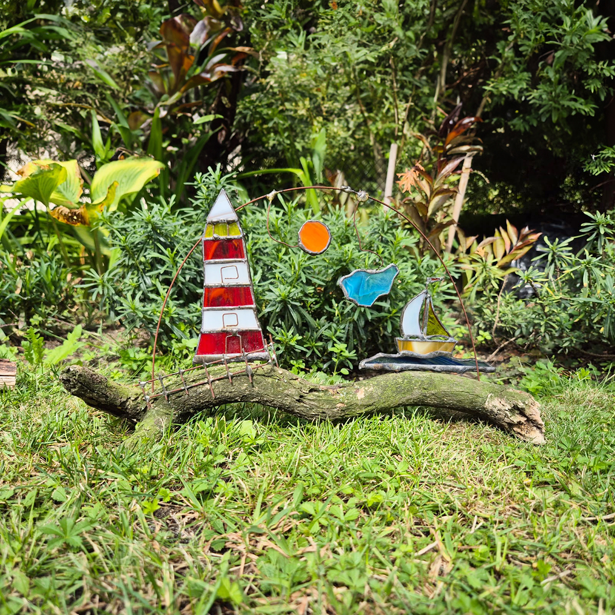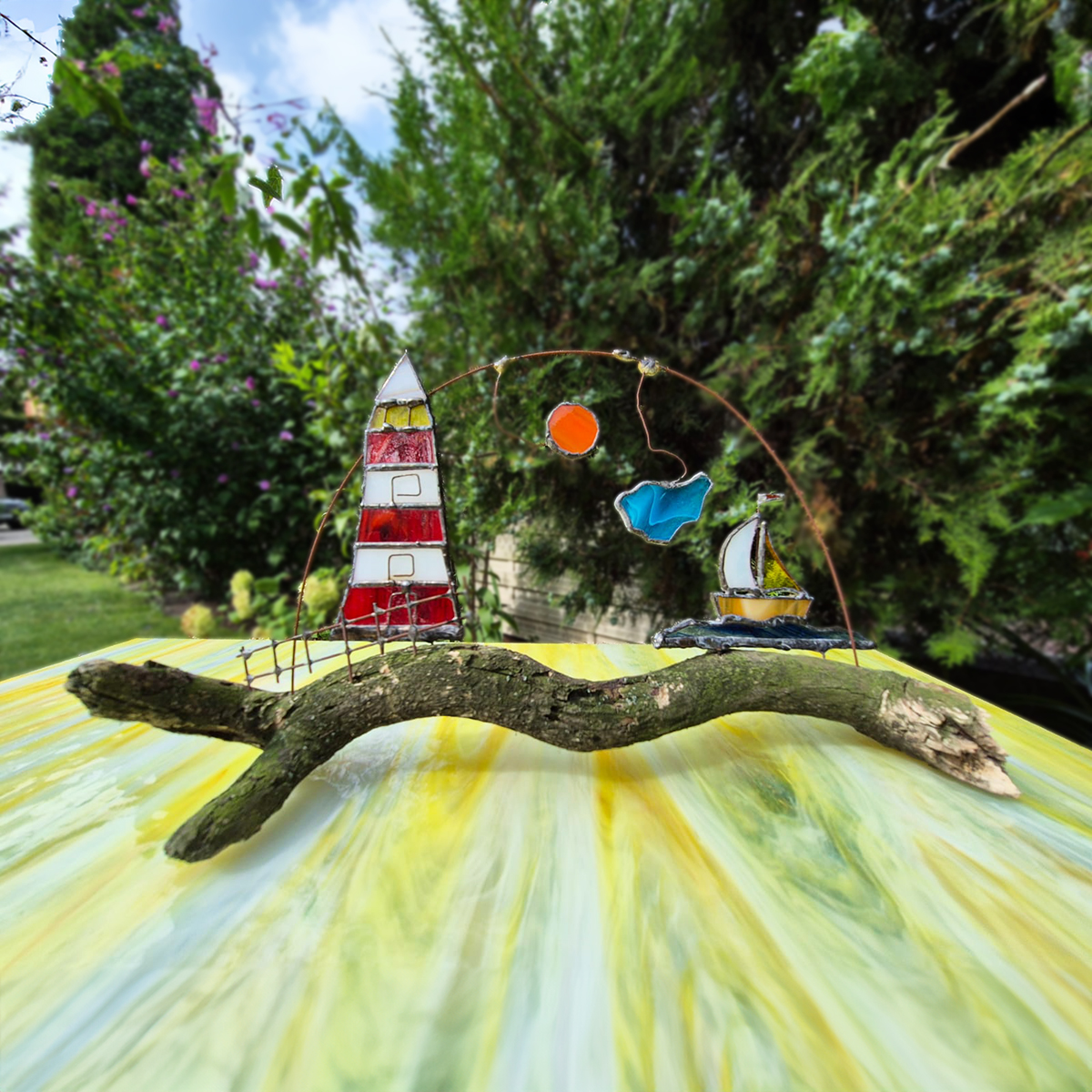 Witraże wykonane metodą Tiffany’ego. Po uprzednim przygotowaniu projektu, z tafli szkła witrażowego wycina się pojedyncze detale i odpowiednio szlifuje. Następnie owijamy każdy szklany element cieką miedzianą taśmą i łączymy za pomocą cyny.