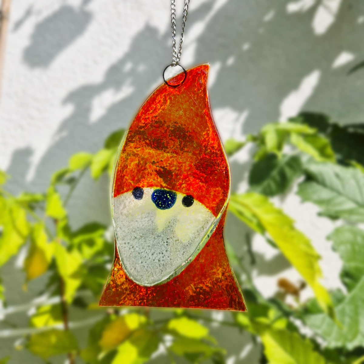 Praca wykonana z wcześniej ręcznie wyciętych elementów szklanych. Następnie udekorowana farbami do fusingu i wypalona w specjalistycznym piecu w temperaturze 810°C.