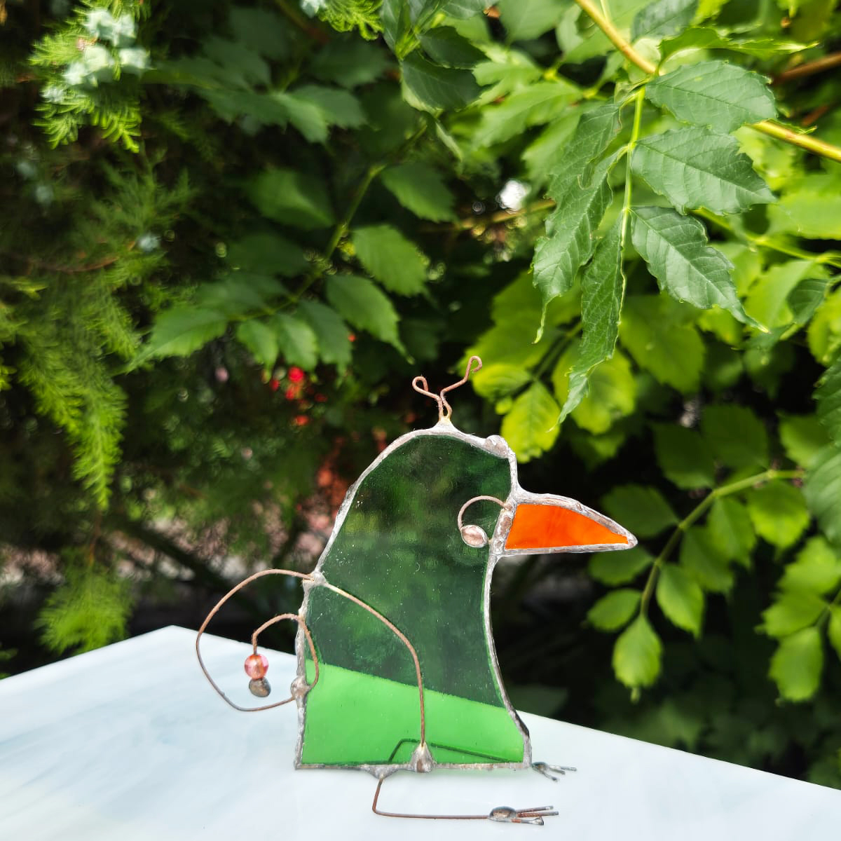 Witraże wykonane metodą Tiffany’ego. Po uprzednim przygotowaniu projektu, z tafli szkła witrażowego wycina się pojedyncze detale i odpowiednio szlifuje. Następnie owijamy każdy szklany element cieką miedzianą taśmą i łączymy za pomocą cyny.