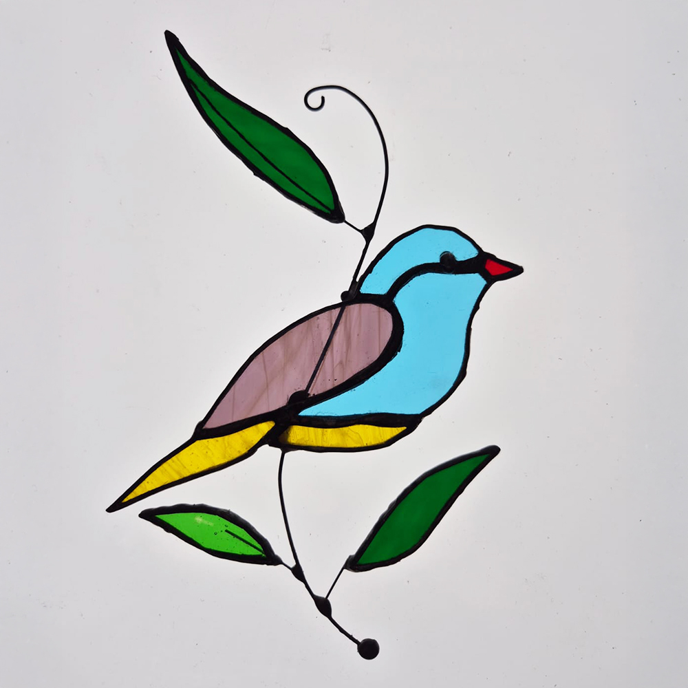 Dzięki różnorodności barw szkła każdy ptaszek jest jedyny w swoim rodzaju – może delikatnie różnić się wybarwieniem i formą, co czyni go wyjątkowym. Idealnie prezentuje się zawieszony w oknie, gdzie pięknie gra światłem, lub jako subtelna ozdoba w domu.