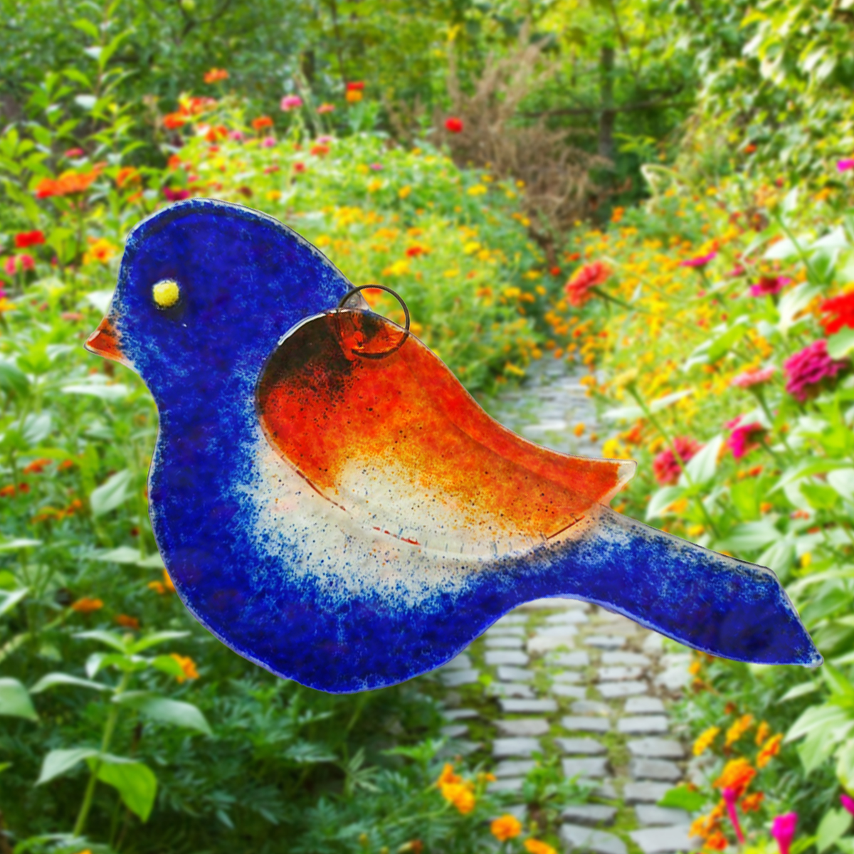 Praca wykonana i wcześniej ręcznie wyciętych elementów szklanych. Następnie udekorowano farbami do fusingu i wypalone w specjalistycznym piecu w temperaturze 810°C.