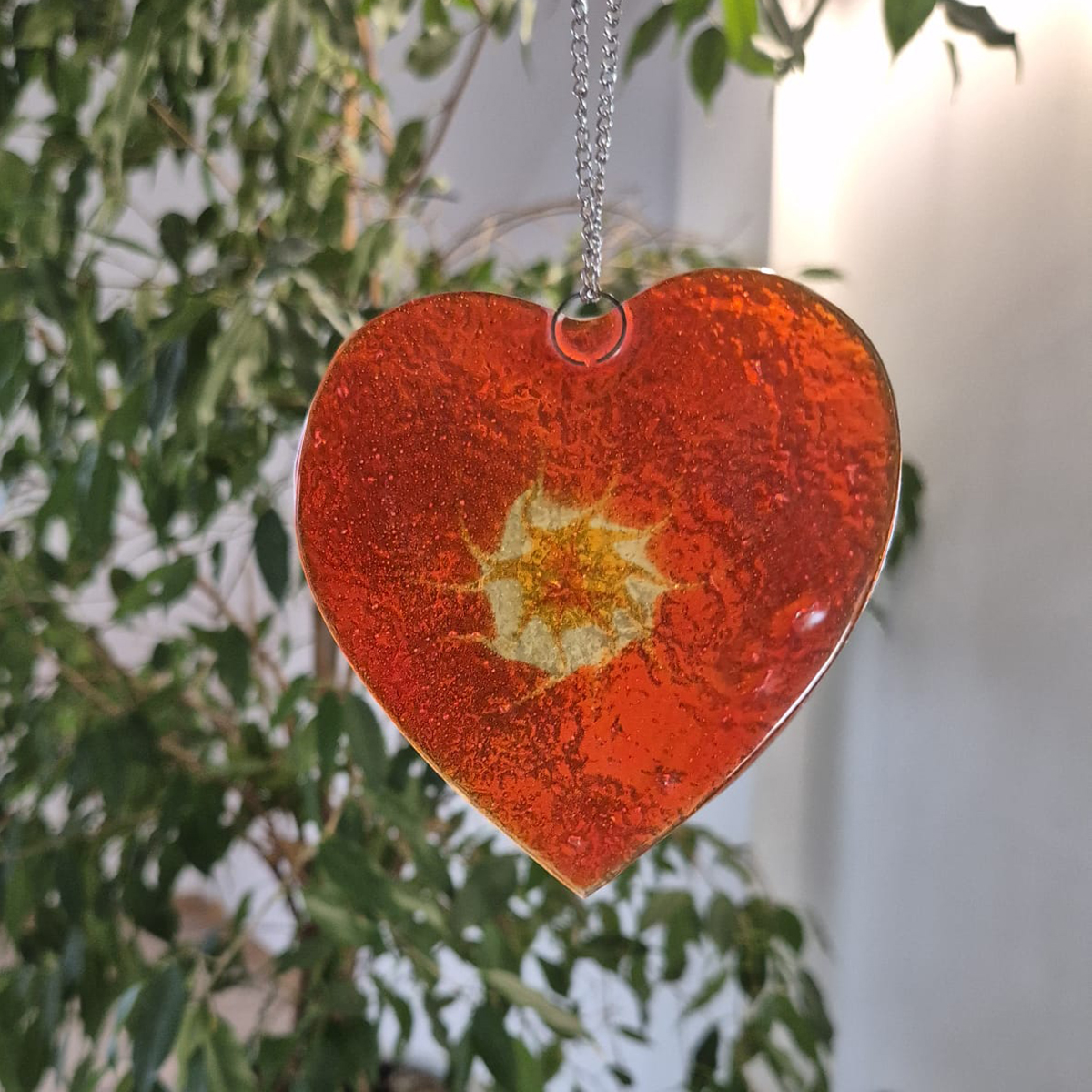 Ta wyjątkowa zawieszka to ręcznie wykonana ozdoba, która wniesie do Twojego domu odrobinę świątecznej magii. Stworzony metodą fusingu – stapiania szkła w wysokiej temperaturze – zachwyca delikatnymi detalami i subtelnym blaskiem. Idealny do zawieszenia na choince lub jako prezent, który wyrazi ciepłe uczucia.