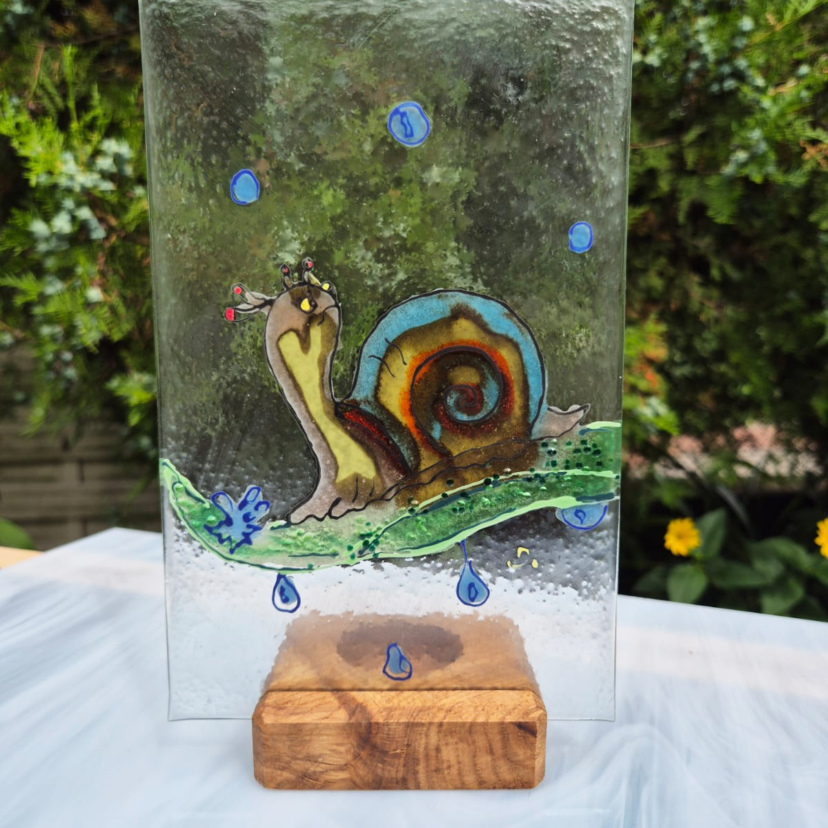 Kontury, kolory, dekoracyjne fryty nakładamy z każdej strony szkła co pozwala uzyskać głębie wykonanej pracy. Malunek utrwalany w procesie wypalania w piecu i jednocześnie dzięki procesowi zgrzewania i krystalizacji szkła wydobywamy piękno kolorów barw.