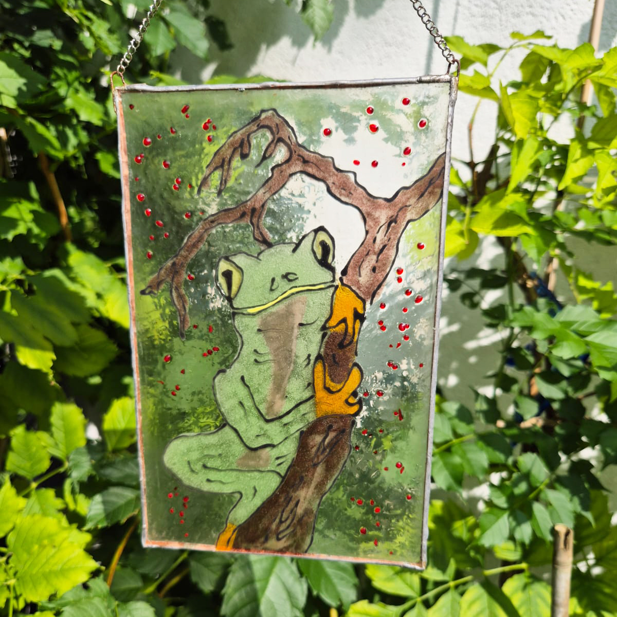 Kontury, kolory, dekoracyjne fryty nakładamy z każdej strony szkła co pozwala uzyskać głębie wykonanej pracy. Malunek utrwalany w procesie wypalania w piecu i jednocześnie dzięki procesowi zgrzewania i krystalizacji szkła wydobywamy piękno kolorów barw.