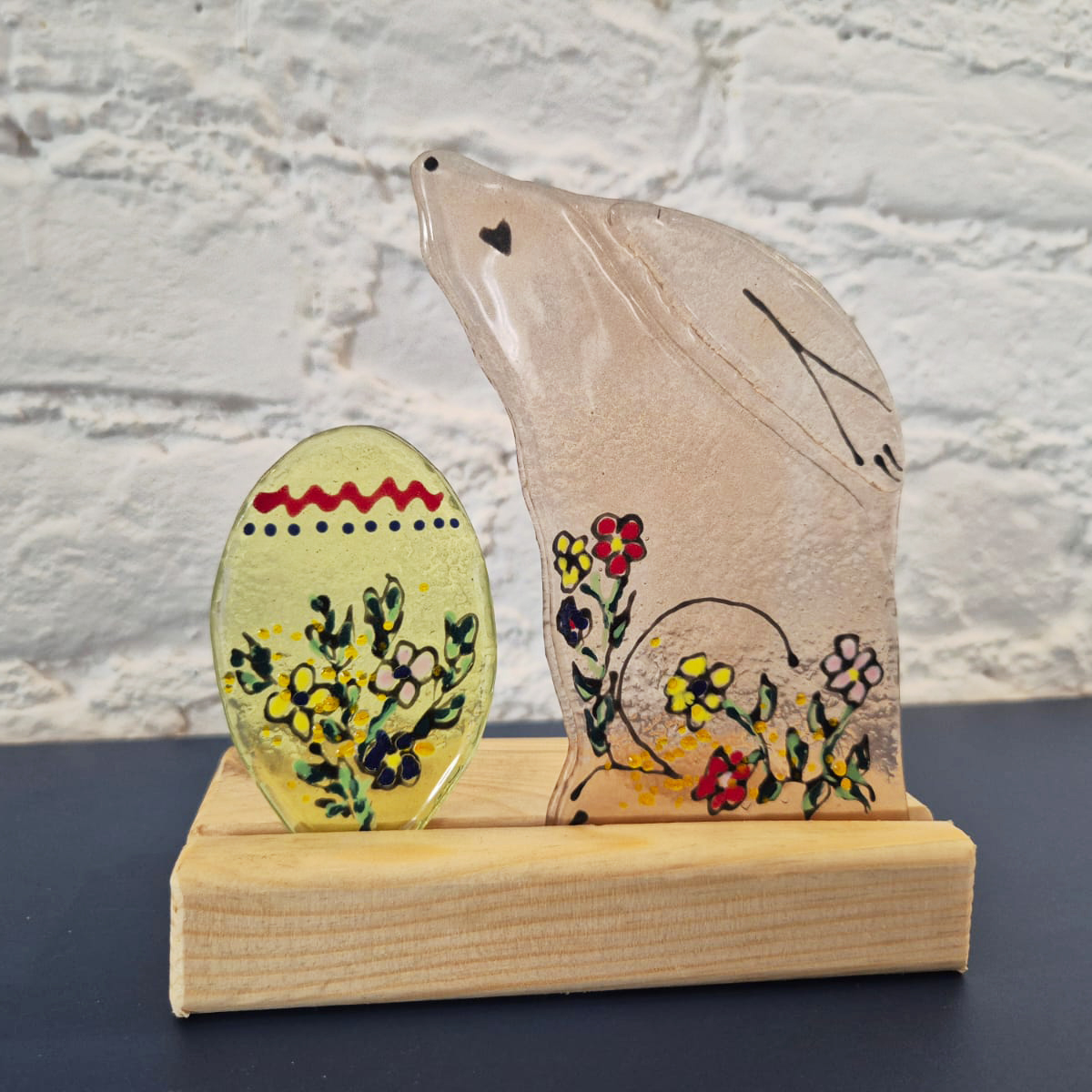 Wprowadź do swojego domu wiosenny nastrój dzięki uroczemu zajączkowi wielkanocnemu z pisanką! Ta wyjątkowa ozdoba świąteczna wykonana metodą fusingu zachwyca barwnymi detalami i delikatnym blaskiem szkła.