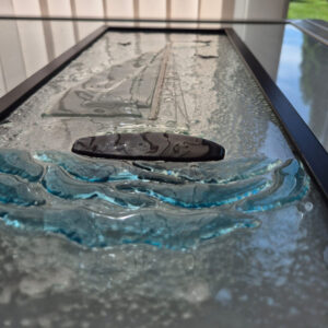 Szklana żaglówka w ramie – ręcznie wykonana dekoracja w technice fusingu, która wnosi do wnętrza lekkość i klimat morskiej przygody.